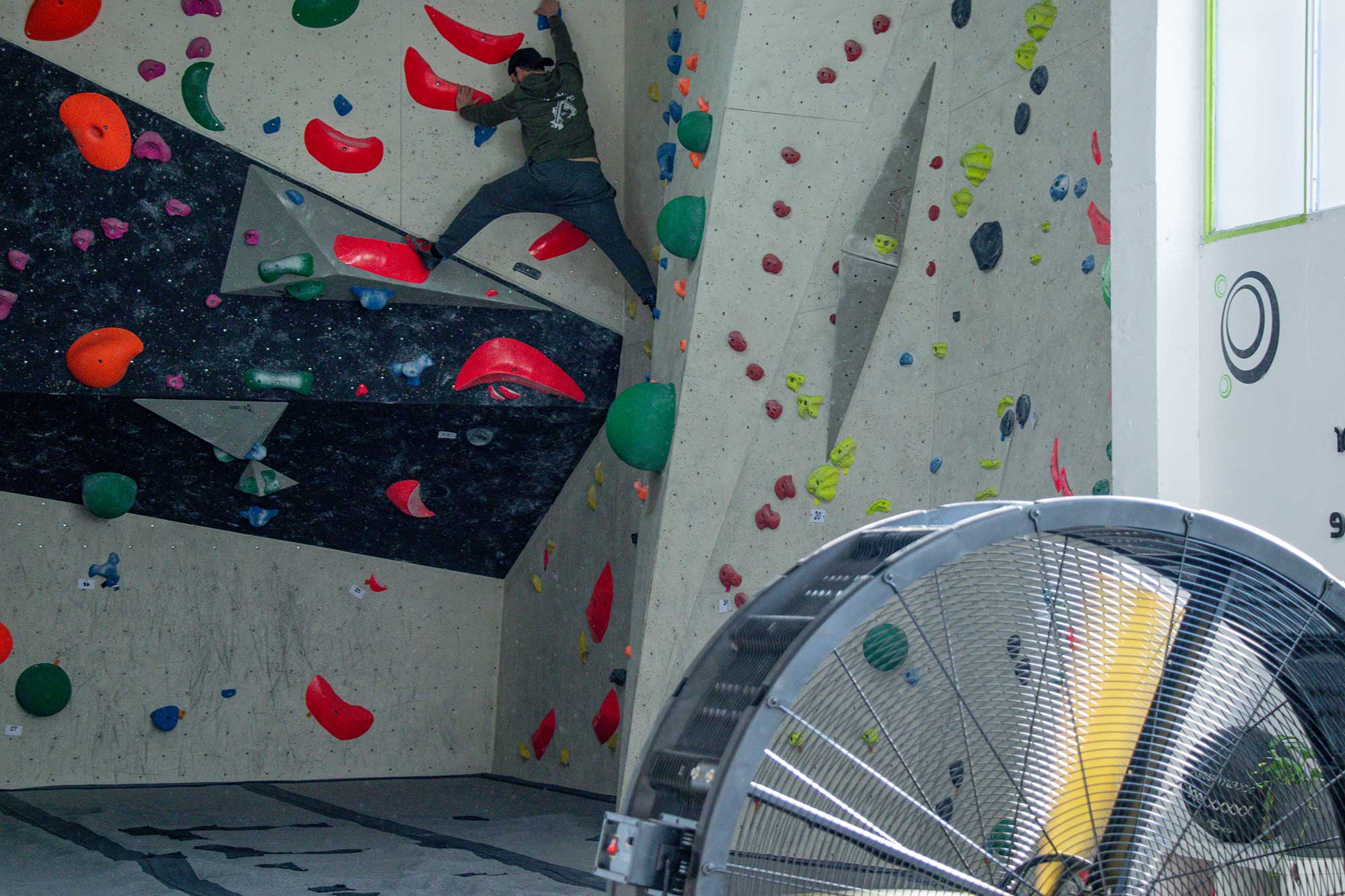 En Can Bombo, un centro de escalada con un espacio amplio y techos altos, nos encontramos con una dificultad común en este tipo de instalaciones: