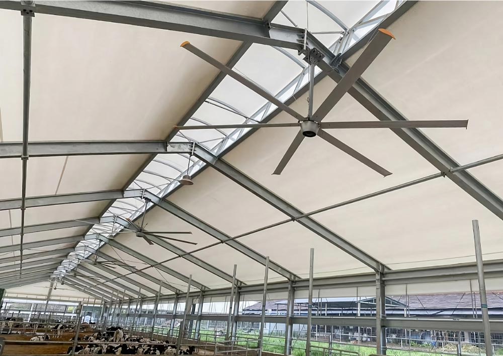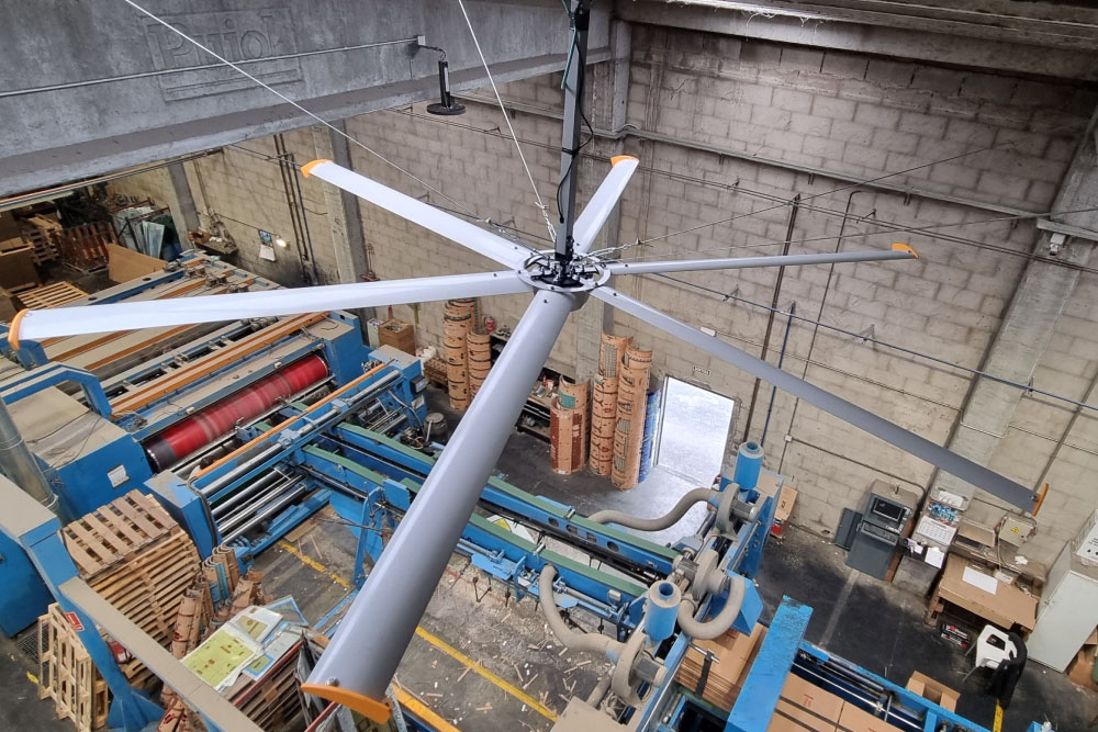 No enfría el aire, el ventilador industrial de techo, reduce la sensación térmica entre 4 °C y 6 °C, mejorando el confort y la ventilación natural.