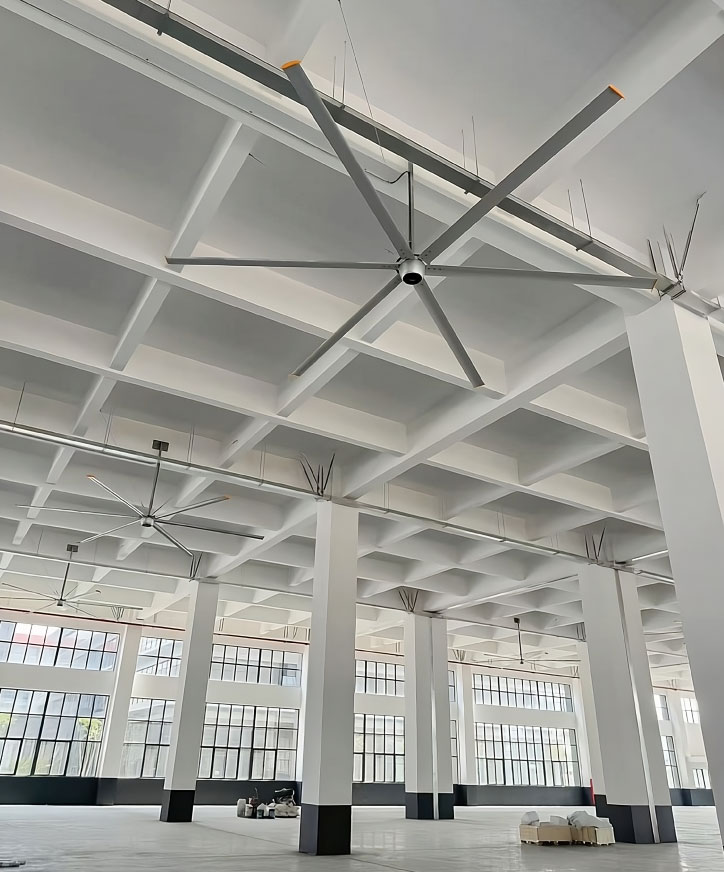 HVLS significa High Volume, Low Speed (Alto Volumen, Baja Velocidad). Son ventiladores de gran diámetro que mueven enormes cantidades de aire girando lentamente. Esto permite ventilar grandes espacios de forma eficiente y silenciosa.